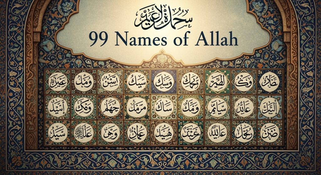 Discover the 99 Names of Allah with meanings. Learn their importance in Islam, spiritual benefits, and how reciting Asma ul Husna brings peace and faith.