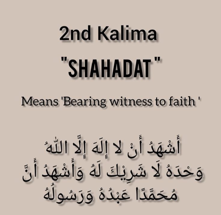 The 2nd Kalma in Arabic is known as Kalma Shahadat, which means “the testimony of faith.” It is slightly longer than the 1st Kalma, but its meaning is just as powerful. The Arabic text goes like this: